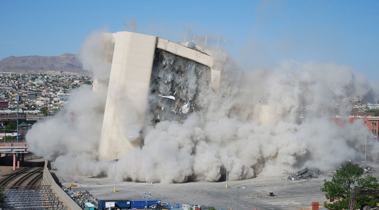 The Old El Paso City Hall implosion project, located in the heart of El Paso, Texas, was complete in seconds. With the proper planning and application of explosives, the 11-story, 27,000 square foot structure was effectively imploded with minimal dust and debris.